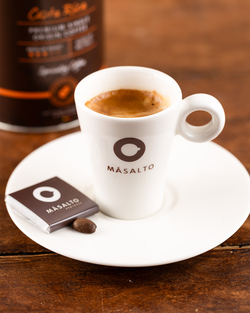 Vivez l’expérience d’un café d’exception grâce à ce coffret de dégustation Másalto contenant une tasse à café Espresso, une sous-tasse et une petite cuillère.